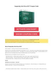 Coupon code has been included in it. You will be redirected to the software publisher's shopping cart page. About Kaspersky Anti-Virus 2017. Antivirus software ...