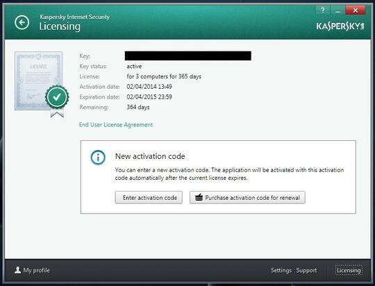 27 Jan 2017 — January 27, 2017 ... Open the security solution — Kaspersky Total Security or Kaspersky ... Click License and then Purchase activation code.