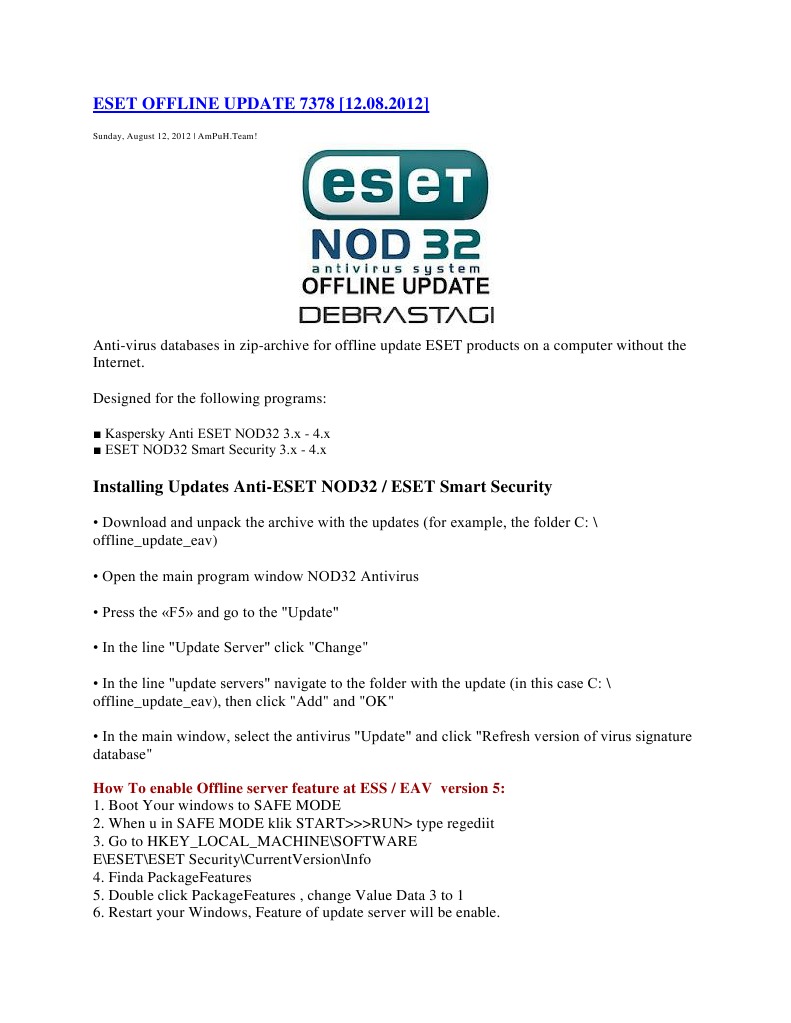 [KB7104] Offline updates for servers or client workstations with ... - ESET The download of module updates may take longer, depending on the Internet connection speed and size of the downloaded files. Enable the Update Mirror and HTTP Server: Open the ESET Endpoint product and press the F5 key to access Advanced setup. Click Update and expand Profiles → Update Mirror. Click the toggle next to Create update mirror to ... Download ESET Server Security for Microsoft Windows Server Try ESET antivirus and internet security solutions for Windows, Android, Mac or Linux OS. ... ESET Server Security for Microsoft Windows Server FORMER ESET FILE SECURITY FOR MICROSOFT WINDOWS SERVER. Configure and download your installer. Then continue to STEP 2 below.. ... Endpoint protection. Identity & data protection. Cloud security. Cloud ...